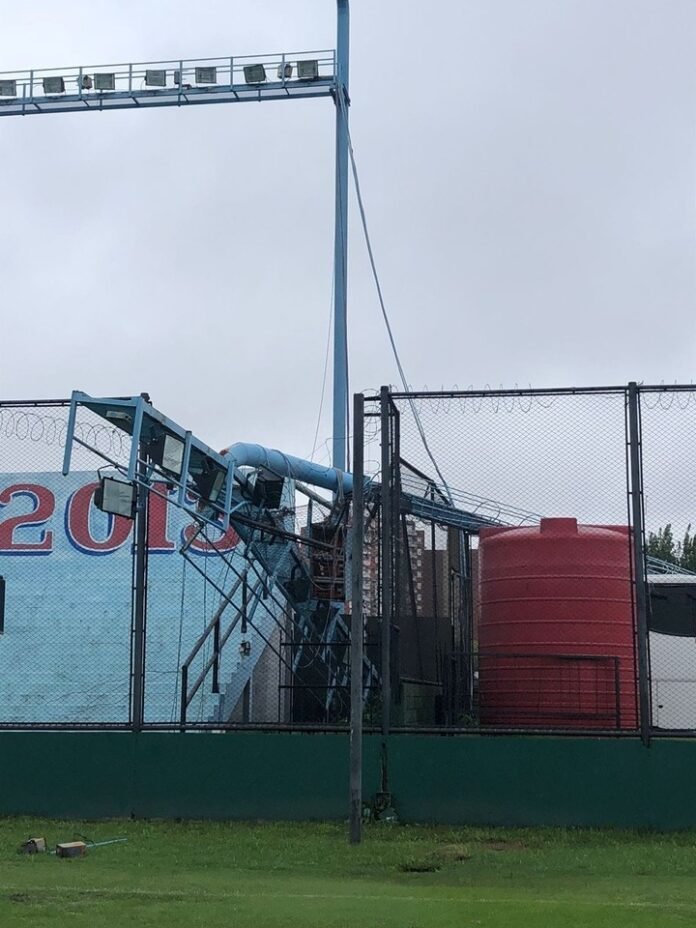 Ferro no es el único equipo de la Primera Nacional que debe afrontar los destrozos en sus instalciones. Arsenal, por su parte, informó que la tormenta generó daños en su estadio. Una de las torres de iluminación del Julio Humberto Grondona se cayó encima de uno de los alambrados durante esta mañana.