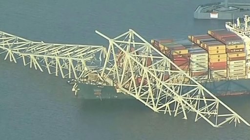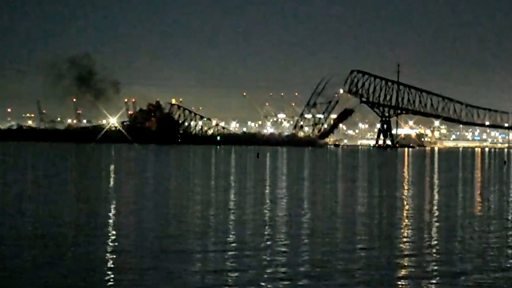 El momento del derrumbre de un puente de Baltimore al ser embestido por un barco carguero