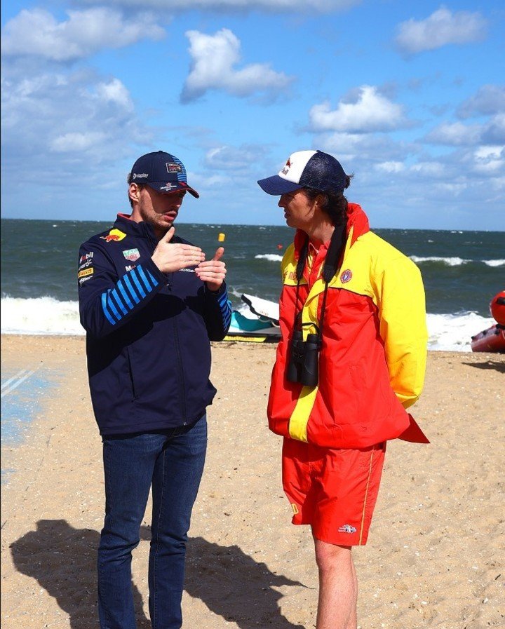 Verstappen con una guardavidas. (@redbull)Verstappen con una guardavidas. (@redbull)