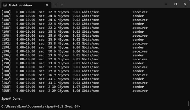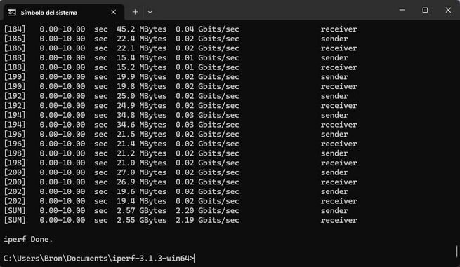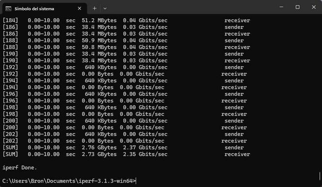 Tal y como podéis ver, obtenemos casi el máximo rendimiento de la interfaz Ethernet que funciona a 2.5Gbps como máximo.