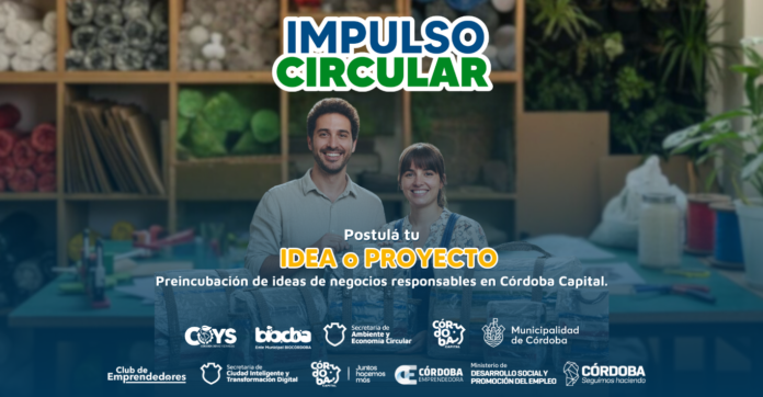Con “Impulso Circular”, la Municipalidad de Córdoba reafirma su compromiso con ser faro de Economía Circular en la región. El programa cuenta con el apoyo del Club de Emprendedores de la Secretaría de Ciudad Inteligente y Transformación Digital; Córdoba Emprendedora perteneciente al Ministerio de Desarrollo Social y Promoción del Empleo del Gobierno de la Provincia, junto a incubadoras y aceleradoras circulares locales.
