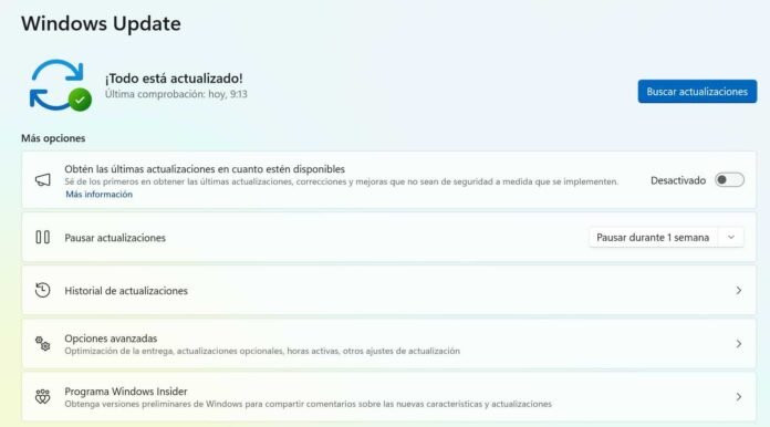 Para asegurarte de tener la última versión instalada, puedes ir a Inicio, entras en Configuración y vas a Windows Update. Automáticamente, verás si hay o no actualizaciones pendientes de instalar.