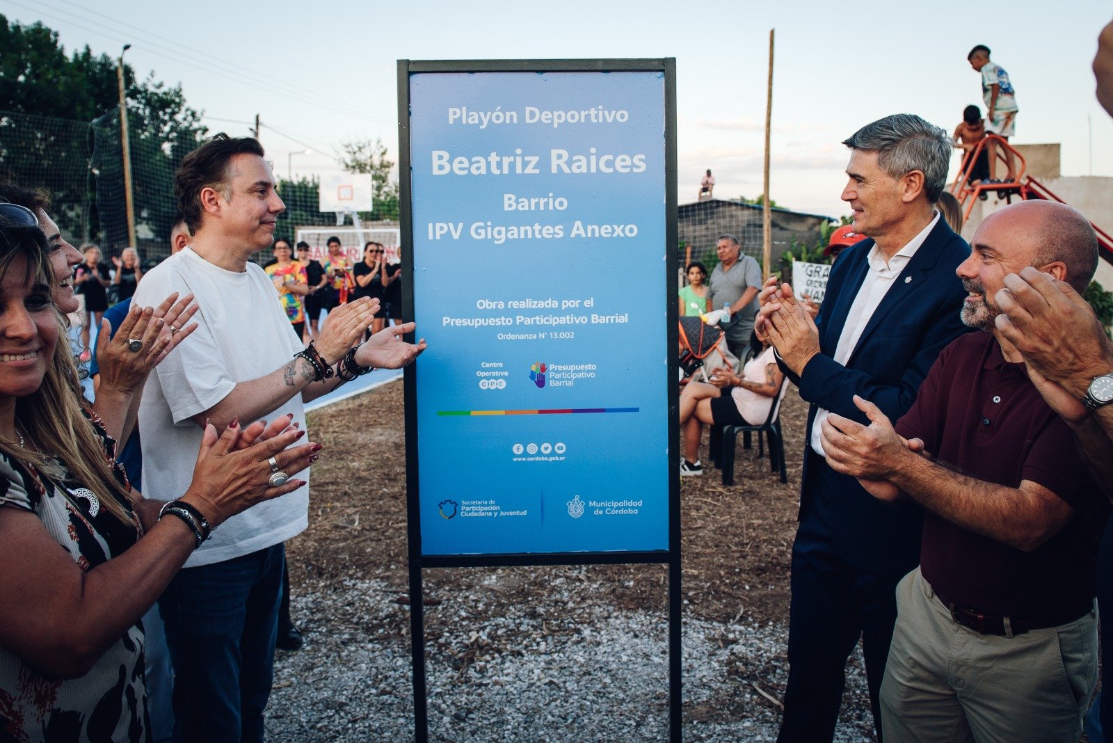 El espacio fue renombrado “Beatriz Raíces”, en honor a una vecina histórica del barrio, que fue reconocida por el intendente: “Beatriz siempre venía a golpear la puerta por algún vecino o alguna vecina, alguien que tenía un problema o una necesidad. Beatriz puso la vida en eso”, expresó Passerini.