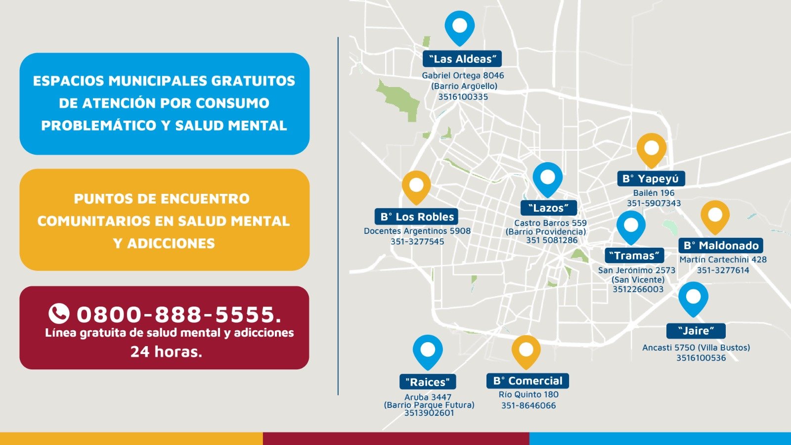 - La Municipalidad de Córdoba dispone de 10 espacios de escucha y acompañamiento y un teléfono para contactarse en caso de necesitar ayuda.