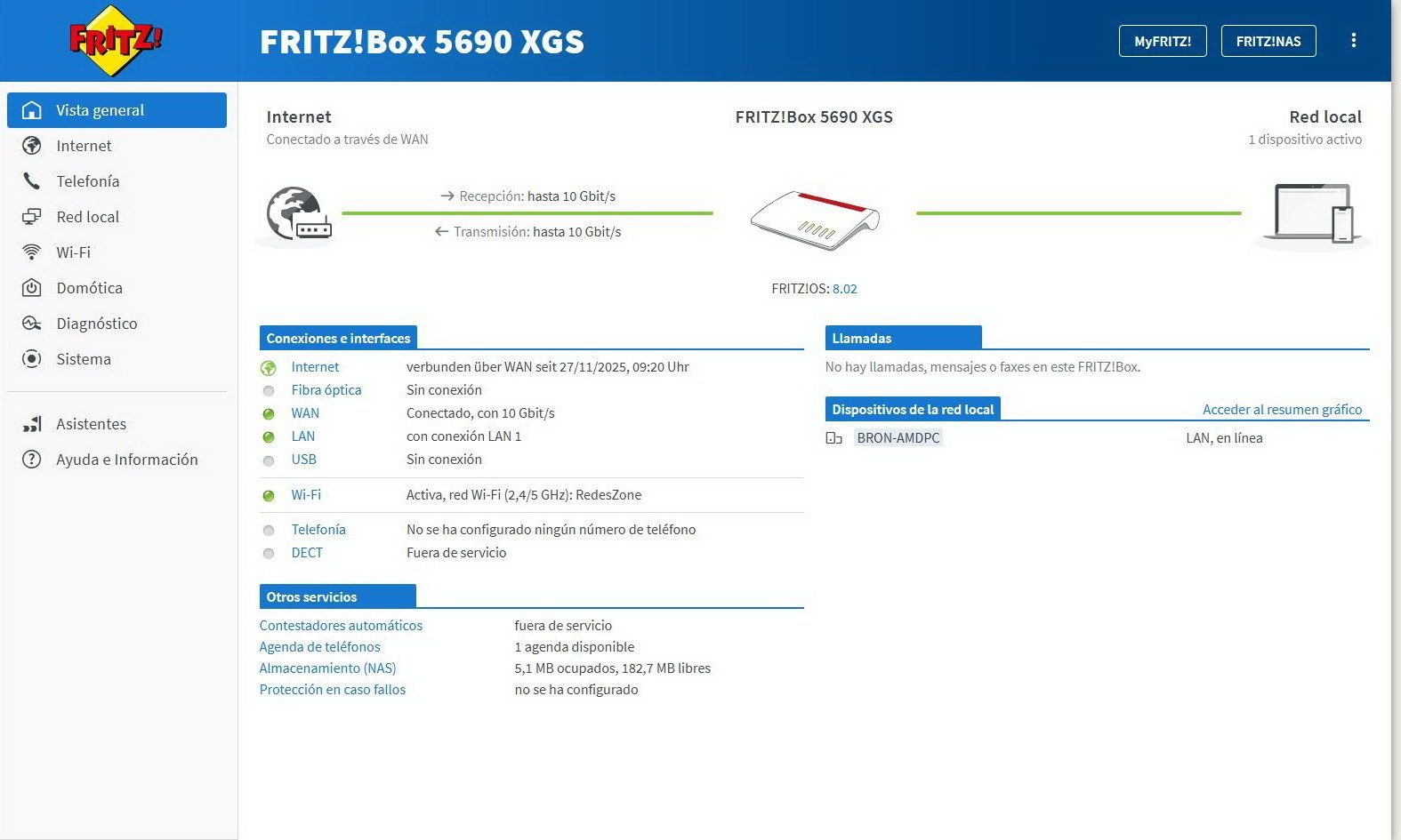 En este nuevo FRITZ!Box 5690 XGS todos los menús son los mismos que otros modelos, debemos tener en cuenta que disponemos del mismo FRITZ!OS 8 de siempre.