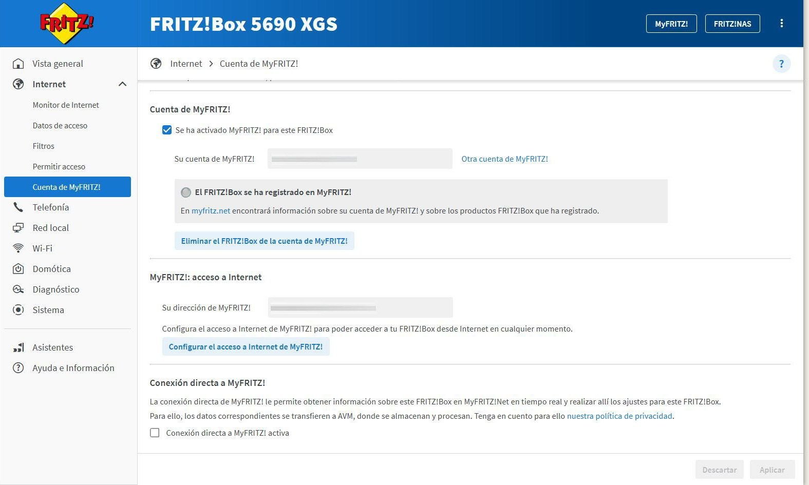 En la sección de «Cuenta de MyFRITZ!» tenemos la posibilidad de registrarnos con nuestro email, para usarlo y recibir notificaciones por correo fácilmente, además, también podemos acceder al router a través del servicio en la nube de la marca que nos facilitará la conexión.