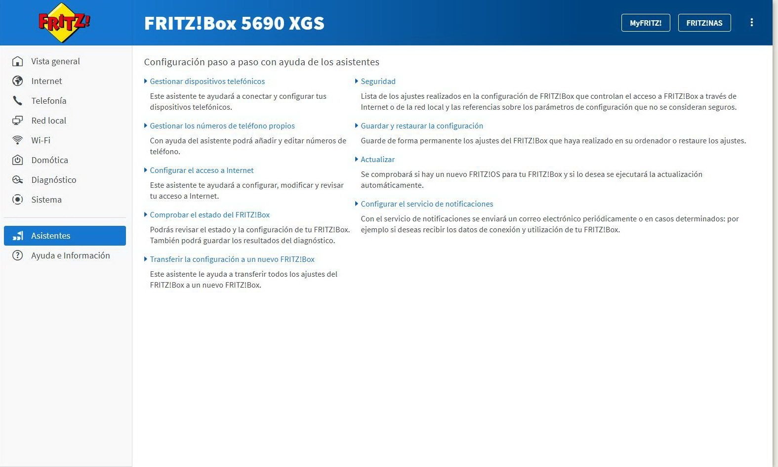 El firmware FRITZ!OS incorpora diferentes asistentes de configuración para realizar diferentes ajustes, por ejemplo, podemos dar de alta dispositivos telefónicos, gestionar los números, configurar el acceso a Internet, ejecutar la comprobación de seguridad, y otras acciones.