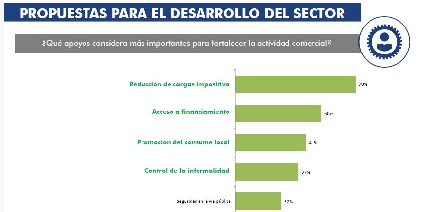 En cuanto a las demandas hacia el entorno económico, el pedido más contundente es la reducción de la carga impositiva, mencionada por siete de cada diez empresarios como la medida más necesaria para fortalecer la actividad, por encima incluso del acceso al financiamiento o de programas de promoción del consumo.