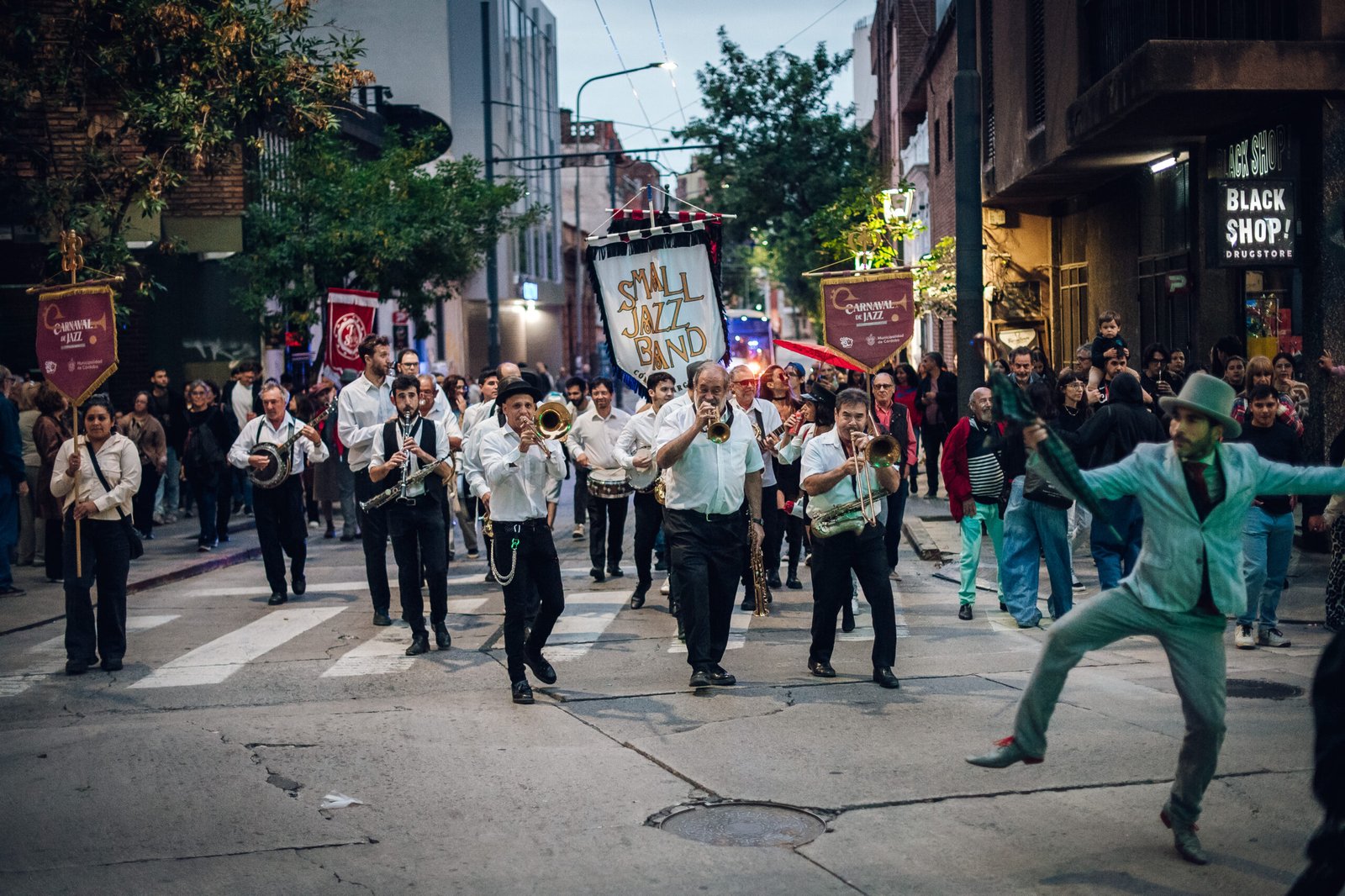 Luego del desfile, entre las 20 y las 22, la celebración continuará con un escenario montado en la explanada y escalinatas del Palacio 6 de Julio, donde se presentarán Alapar, Blues Velvet y la Small Jazz Band, acompañados por los grupos de baile Córdoba Swing y Dai Zapata Tap y Swing, cerrando una noche que conjuga música, danza y celebración colectiva.