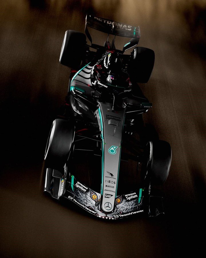 Finalmente, Mercedes fue el último equipo que hizo modificaciones en su diseño. De todos modos, no se alejó demasiado de su look habitual. La base es la misma, con un cambio significativo en el alerón delantero: la cara de un lobo dibujada al estilo japonés, con sus ojos amarillos destacándose, que fue presentada por los punteros del campeonato con el mensaje “desatando a la bestia”.