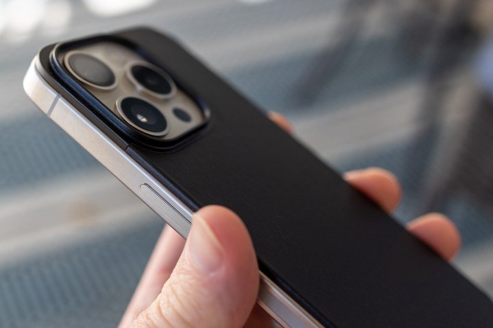 Es una propuesta bastante simple: la parte posterior usa la conexión MagSafe y tres almohadillas de «microsucción» para mantener la parte posterior adherida al iPhone. Los laterales y la parte frontal del teléfono quedan desprotegidos. Los botones están expuestos. Y hasta aquí, todo bien.